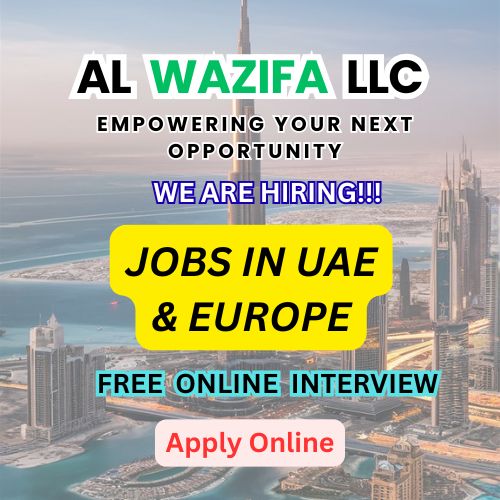 No hidden charges, no middlemen — just real opportunities that comply with UAE labour laws. Explore the latest vacancies below and start your journey towards a rewarding Gulf career today. If you’re ready to explore exciting opportunities abroad, let’s begin this journey together. At Al Wazifa LLC, we’re not just helping you find work—we’re helping you create a better tomorrow.